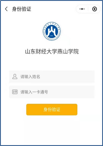(1)在支付宝或微信小程序搜索”校园e码通”小程序,打开校园e码通小程序,搜索“山东财经大学燕山学院”并选择;进行校园e码通身份验证。
