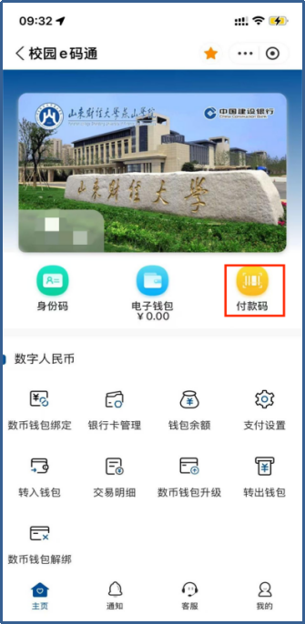 一、“校园E码通”绑定及认证(很重要,完成绑定和认证后才开通消费和线上充值)